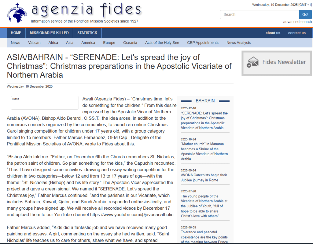 The Apostolic Vicariate of Northern Arabia has begun its Christmas preparations, embracing this year’s theme “SERENADE.”